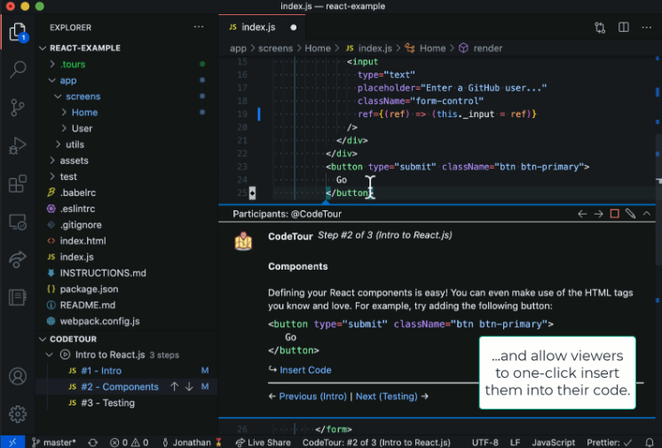 1、CodeTour项目地址:https://github.com/microsoft/codetour项目简介:CodeTour是VSCode的一个插件,它允许记录和回放代码库的演练和思路。通过为代码添加备注并将这些备注串联起来,CodeTour能够动态地展示开发者的思路以及代码逻辑。这对于新加入项目的成员来说尤其有...