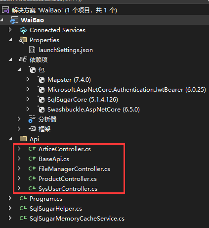 前言不管是官方自带模板还是其他开源搞的,总是一来一大堆,如果你也嫌弃这些过于臃肿,不如看看我这个方式已开源,没啥技术含量,只是一个思路开源地址:https://github.com/DotNetGoodMorning/SimpleWaiBao/tree/main正文1、前提假设我要做一个简单的API2、方式想到清爽,那...