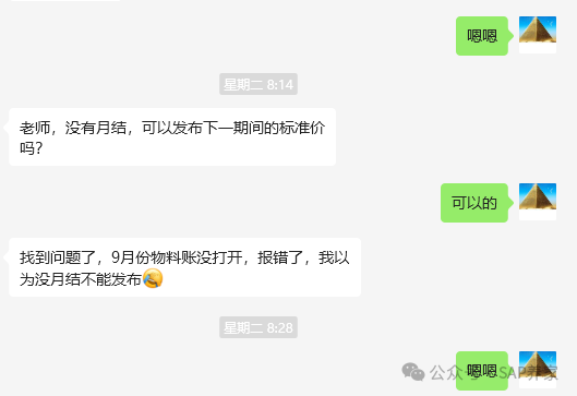 业务背景:一个学员问我:其实呢,月结一般有两种模式:(一)次月结比如:2025年8月的账,到9月3日~5日之间月结。那么标准价发布时间是:9月1日9月1日发布标准成本正常,9月5日月结也正常,所以前面那个问题也正常。(二)当月结比如:2025年8月的账,8月31日前做月结。那8月30日能不能发布标准成本?答案是应该是没...