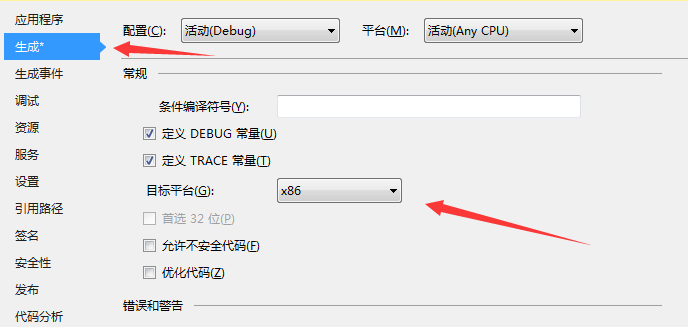 这个错误是因为webkit必须运行在32位系统,项目默认是 Any CPU 需要修改成x86