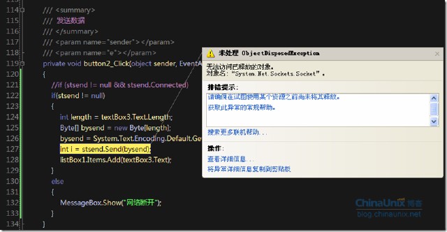 - 1、经典错误之 无法访问已释放的对象。 对象名:“System.Net.Sockets.Socket”