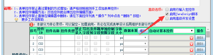在提交前JS脚本或表体JS脚本中输入合适的判断JS脚本即可。