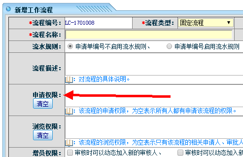 注意,设计工作流流程时,有一项是设置申请人范围,必须是申请人权限范围的工作流流程,才能看到: