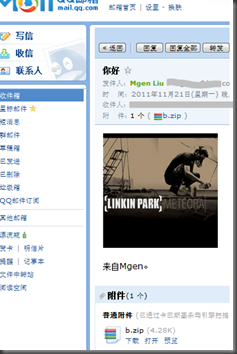 第一次使用这种方式发邮件呵呵,就比如拿我的Live邮箱往QQ邮箱上发一封邮件。 使用SmtpClient发送邮件的步骤就不讲了,在网上你可以找到太多的资料了,这里说一些需要注意的地方: 如果邮件的内容是HTML,设置MailMessage.IsBodyHtml为True,这样邮件才能够被正确以HTML形式读取。 在HTML中引用资源使用cid:xxx,xxx是附件的ContentId属性。同时也可以在MailMessage中的AlternateViews中加入AlternateView来指定电子邮件内容的不同格式。通过AlternativeView的LinkedResources来加入引用文件。引用也是通过LinkedResource的ContentId来设置的。事实上这个ContentId属性是来自AttachmentBase类型,而Attachment,AlternateView和LinkedResource类型都继承与这个类: 另外邮件的内容,主题,地址名称如果包含某些非ASCII字符的话应该指定一个编码,因为默认编码是ASCII。 最后某些SMTP服务器可能不支持SSL传输,因此SmtpClient的EnableSsl只能为false(否则会有异常抛出)。 代码: using System; using System.Text; using System.Net; using System.Net.Mime; using System.Net.Mail; namespace Mgen { class Program { static void Main() { //代码中的某些信息(如邮箱和密码)已用xxx代替,因此如果编译代码,请先替换成有效的数据! using (var smtp = new SmtpClient()) using (var mail = new MailMessage("xxx@live.com", "xxx@qq.com")) { //图像附件 var attach = new Attachment(@"D:\a.jpg", MediaTypeNames.Image.Jpeg); //设置ContentId attach.ContentId = "pic"; //ZIP附件 var attach2 = new Attachment(@"D:\b.zip", "application/x-zip-compressed"); mail.Attachments.Add(attach); mail.Attachments.Add(attach2); //标题和内容,注意设置编码,因为默认编码是ASCII mail.Subject = "你好"; mail.SubjectEncoding = Encoding.UTF8; //HTML内容 mail.Body = "<img src=\"cid:pic\"/><p>来自Mgen。</p>"; mail.BodyEncoding = Encoding.UTF8; //指示改电子邮件内容是HTML格式 mail.IsBodyHtml = true; //SMTP设置(根据邮箱类型设置,这里是Live Mail的SMTP服务器地址) smtp.Host = "smtp.live.com"; smtp.UseDefaultCredentials = false; //某些SMTP服务器可能不支持SSL,会抛出异常 smtp.EnableSsl = true; smtp.Credentials = new NetworkCredential("xxx@live.com", "xxx"); smtp.DeliveryMethod = SmtpDeliveryMethod.Network; //发送 smtp.Send(mail); } } } } 最后在QQ邮箱中浏览接收到的邮件: 该文章在 2017/11/7 21:10:14 编辑过 |