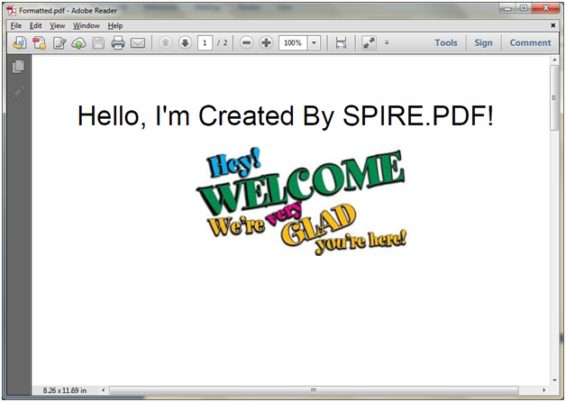 page.Canvas.DrawString("Hello, I''m Created By SPIRE.PDF!",