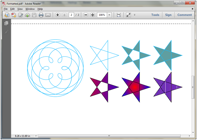现在我们在同一个PDF文件中再加点料,像边框啊,水印啦,再加一些有格式设置的图片。我为了让我这篇教程看上去比较简洁,就把所有代码附在了示例中。它是一个包含了所有代码的小型windows窗口程序,你可以从这里下载