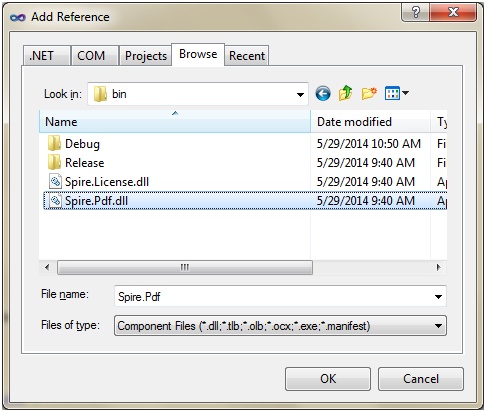 安装下载的软件,结果你会得到两个dll文件(Spire.License.dll和 Spire.Pdf.dll),如下图所示在你的程序中添加他们的引用: