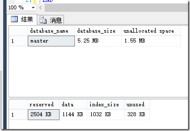 执行完毕后结果是两个表,第一个表中包含了基本的统计信息,第二个表示更加详细的数据占用情况。