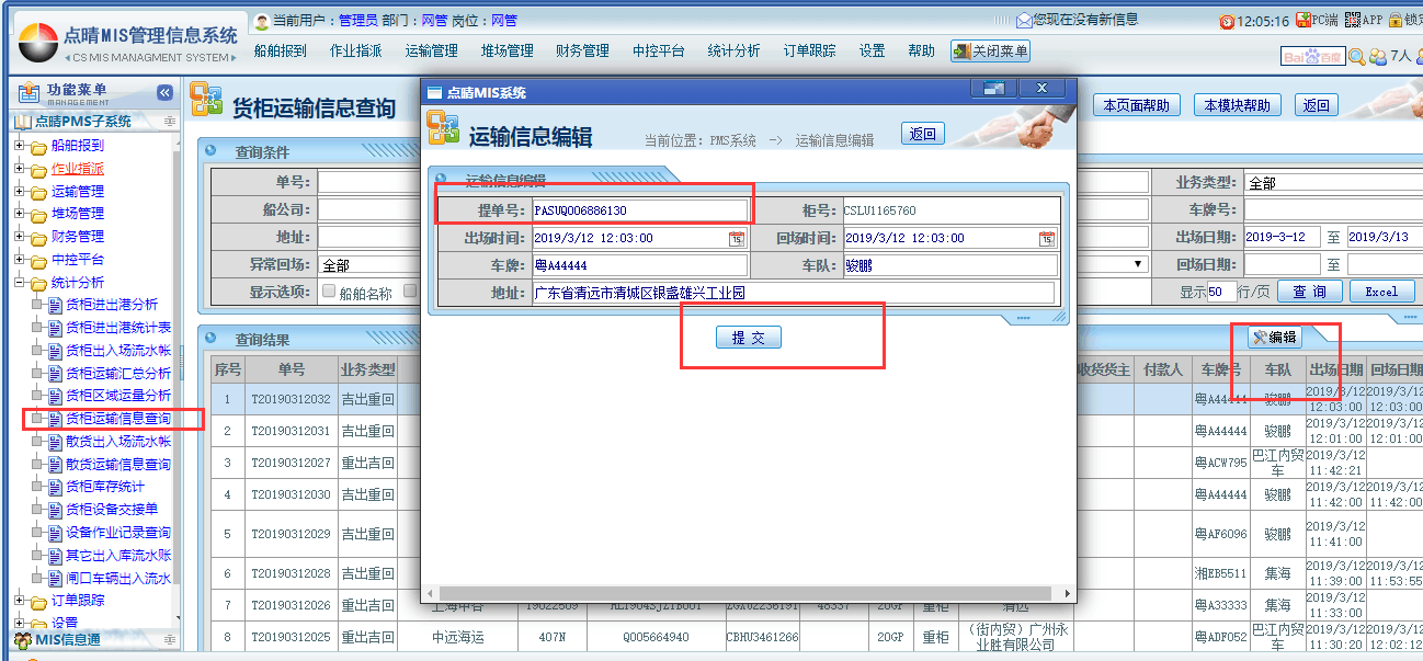 点晴PMS码头系统车辆回场后如何再修改提单号