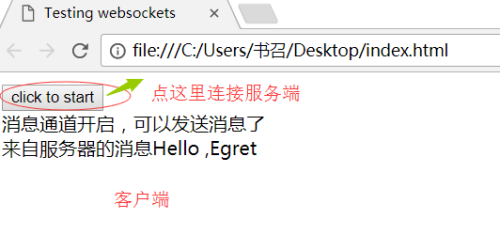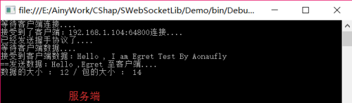 最近测试了一下WebSocket , 服务端WebSocket使用C#的原生ssocket实现。前端使用js的WebSocket 值得提醒的是本次测试的重点: ①:前端和后端额外的握手 ②:后端取得前端数据后如何解析 ③:后端往前端发数据的打包流程 后端Socket核心 using System; using System.ComponentModel; using System.Net; using System.Net.Sockets; using System.Security.Cryptography; using System.Text; using System.Text.RegularExpressions; using System.Threading; using System.Linq; using SWebSocketLib.com; namespace SWebSocketLib { /// <summary> /// WebSocket /// </summary> public sealed class WebSocket_Service { byte[] buffer = new byte[1024]; private Socket _listener = null;//服务端Socket private readonly IPEndPoint _ip_port = null; private readonly int _listen_count = 0; private Action<Socket_CallBack_Type, Object, Socket> _callback = null; public WebSocket_Service( IPEndPoint ip_port , Action<Socket_CallBack_Type , Object , Socket> callback ,int listen_count = 100 ) { this._ip_port = ip_port; this._callback = callback; this._listen_count = listen_count; } /// <summary> /// 启动监听 /// </summary> public void Start() { if (this._listener == null) this._listener = new Socket(AddressFamily.InterNetwork, SocketType.Stream, ProtocolType.Tcp); this._listener.Bind(this._ip_port); this._listener.Listen(this._listen_count); this.accept(); } /// <summary> /// 等待连接 /// </summary> private void accept() { Console.WriteLine("等待客户端连接...."); Socket sc = _listener.Accept();//接受一个连接 Console.WriteLine("接受到了客户端:" + sc.RemoteEndPoint.ToString() + "连接...."); this.Receive2HandShake(sc); } #region 正式接收客户端信息 private void Receive2Msg(Socket client) { Console.WriteLine("等待客户端数据...."); int length = client.Receive(buffer);//接受客户端信息 if (length > 0) { string clientMsg = AnalyticData(buffer, length); Console.WriteLine("接受到客户端数据:" + clientMsg); if (clientMsg == @"Hello , I am Egret Test By Aonaufly") { this._callback(Socket_CallBack_Type.connect_succ, null, client);//发送连接成功信息 } //this.Receive2Msg(client); } else { client.Disconnect(true); } } #endregion #region 向服务端发送信息 public void Send2Msg(Socket client, string clientMsg) { Console.WriteLine("==发送数据:" + clientMsg + " 至客户端...."); byte[] body = Encoding.UTF8.GetBytes(clientMsg); byte[] c = this.PackData(body); Console.WriteLine("数据的大小 : {0} / 包的大小 : {1}", body.Length , c.Length); client.Send(c); } #endregion #region 接收客户端发来的握手信息并返回握手信息 /// <summary> /// 第四次握手信息处理 /// </summary> /// <param name="client"></param> private void Receive2HandShake(Socket client) { int length = client.Receive(buffer); if (length > 0) { client.Send(PackHandShakeData(GetSecKeyAccetp(buffer, length))); Console.WriteLine("已经发送握手协议了...."); this.Receive2Msg(client); } else { client.Disconnect(true); } } #endregion #region WebSocket的的四次额外握手信息 /// <summary> /// 打包握手信息 /// </summary> /// <param name="secKeyAccept"></param> /// <returns></returns> private static byte[] PackHandShakeData(string secKeyAccept) { var responseBuilder = new StringBuilder(); responseBuilder.Append("HTTP/1.1 101 Switching Protocols" + Environment.NewLine); responseBuilder.Append("Upgrade: websocket" + Environment.NewLine); responseBuilder.Append("Connection: Upgrade" + Environment.NewLine); responseBuilder.Append("Sec-WebSocket-Accept: " + secKeyAccept + Environment.NewLine + Environment.NewLine); return Encoding.UTF8.GetBytes(responseBuilder.ToString()); } /// <summary> /// 生成Sec-WebSocket-Accept /// </summary> /// <param name="handShakeText">客户端握手信息</param> /// <returns>Sec-WebSocket-Accept</returns> private static string GetSecKeyAccetp(byte[] handShakeBytes, int bytesLength) { string handShakeText = Encoding.UTF8.GetString(handShakeBytes, 0, bytesLength); string key = string.Empty; Regex r = new Regex(@"Sec\-WebSocket\-Key:(.*?)\r\n"); Match m = r.Match(handShakeText); if (m.Groups.Count != 0) { key = Regex.Replace(m.Value, @"Sec\-WebSocket\-Key:(.*?)\r\n", "$1").Trim(); } byte[] encryptionString = SHA1.Create().ComputeHash(Encoding.ASCII.GetBytes(key + "258EAFA5-E914-47DA-95CA-C5AB0DC85B11")); return Convert.ToBase64String(encryptionString); } #endregion #region 解析客户端数据 /// <summary> /// 解析客户端数据包 /// </summary> /// <param name="recBytes">服务器接收的数据包</param> /// <param name="recByteLength">有效数据长度</param> /// <returns></returns> private string AnalyticData(byte[] recBytes, int recByteLength) { if (recByteLength < 2) { return string.Empty; } bool fin = (recBytes[0] & 0x80) == 0x80; // 1bit,1表示最后一帧 if (!fin) { return string.Empty;// 超过一帧暂不处理 } bool mask_flag = (recBytes[1] & 0x80) == 0x80; // 是否包含掩码 if (!mask_flag) { return string.Empty;// 不包含掩码的暂不处理 } int payload_len = recBytes[1] & 0x7F; // 数据长度 byte[] masks = new byte[4]; byte[] payload_data; if (payload_len == 126) { Array.Copy(recBytes, 4, masks, 0, 4); payload_len = (UInt16)(recBytes[2] << 8 │ recBytes[3]); payload_data = new byte[payload_len]; Array.Copy(recBytes, 8, payload_data, 0, payload_len); } else if (payload_len == 127) { Array.Copy(recBytes, 10, masks, 0, 4); byte[] uInt64Bytes = new byte[8]; for (int i = 0; i < 8; i++) { uInt64Bytes[i] = recBytes[9 - i]; } UInt64 len = BitConverter.ToUInt64(uInt64Bytes, 0); payload_data = new byte[len]; for (UInt64 i = 0; i < len; i++) { payload_data[i] = recBytes[i + 14]; } } else { Array.Copy(recBytes, 2, masks, 0, 4); payload_data = new byte[payload_len]; Array.Copy(recBytes, 6, payload_data, 0, payload_len); } for (var i = 0; i < payload_len; i++) { payload_data[i] = (byte)(payload_data[i] ^ masks[i % 4]); } return Encoding.UTF8.GetString(payload_data); } #end