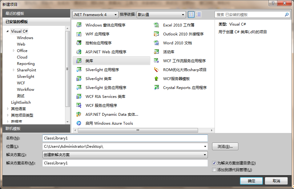 1.打开VS,新建类库,使用默认的ClassLibrary1名称。
