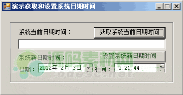 C#得到Windows当前日期时间,演示获取和设置系统日期时间,程序还可设置系统当前日期时间,相信你一看就会明白了,程序运行界面如截图所示。