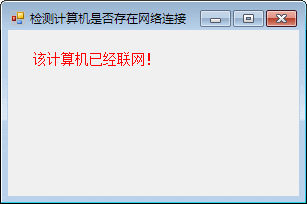 if (SystemInformation.Network)//判断是否有网络连接 label1.Text = "该计算机已经联网!"; else label1.Text = "该计算机尚未联网!"; 该文章在 2021/2/4 15:59:03 编辑过 |