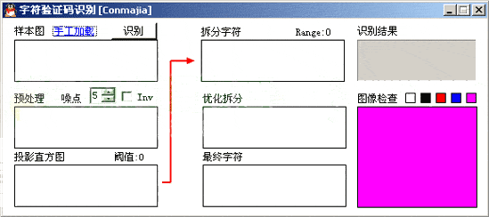 分享一个C#图像验证码识别实例,比较基础的图像识别实例,识别字符型的验证码,好像还有号牌识别,里面用了比较多的DLL文件,程序通过图像噪点预处理、投射直方图、拆分和优化字符来生成最终的图像供识别,在窗口中显示识别结果,具体步骤请详见源代码。