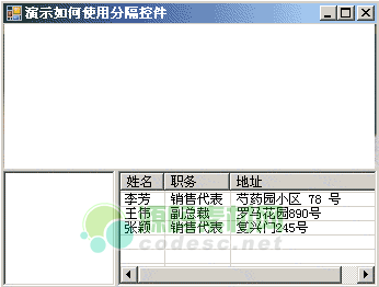 C#分割窗体、分栏窗口,采用:System.Windows.Forms.Splitter();很像WEB设计中的iFrame框架,把窗口分成多个部分,横向或纵向的窗口,可用鼠标拖动窗口改变各个部分的大小,这种类似的窗口效果使用广泛,希望掌握这个小技巧哦。