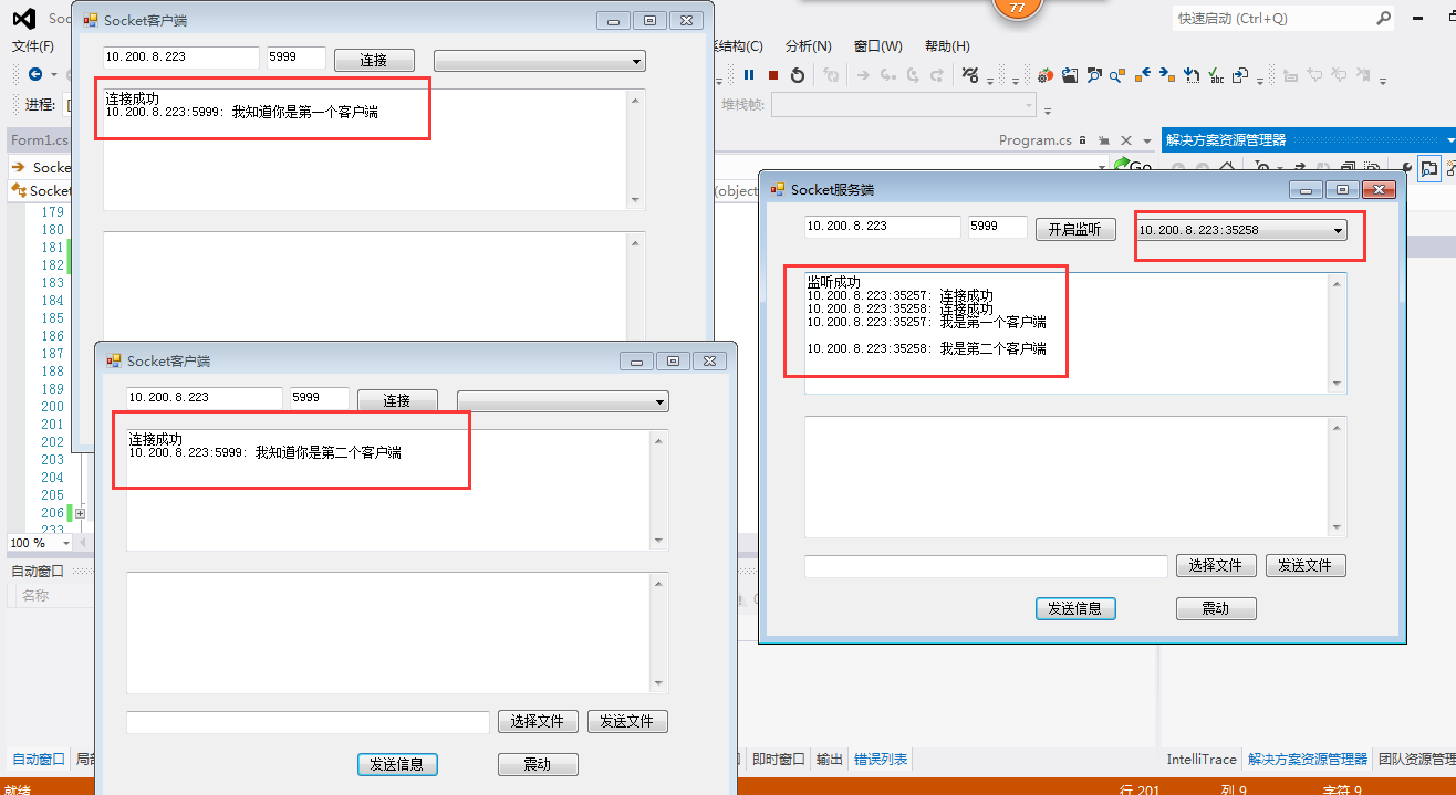 (2)每个客户端连接服务端的啥时候,都会把客户端的ip以及端口号,放到下拉框里,想给那个客户端发信息,就选择对应的客户端