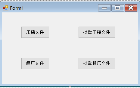 /// 压缩事件 /// /// /// private void btnZipFlo_Click( object sender, EventArgs e) { string [] strs = new string [2]; //待压缩文件目录 strs[0] = "D:\\DeBug1\\" ; //压缩后的目标文件 strs[1] = "D:\\Debug2\\FrpTest.zip" ; ZipFloClass zc = new ZipFloClass(); zc.ZipFile(strs[0], strs[1]); } ///