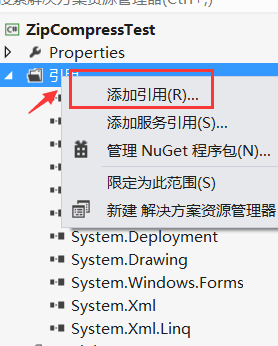1) 添加引用(文件压缩和解压的dll)