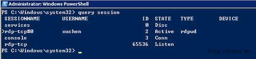 在远程桌面(被连接到的电脑)中先执行 query session 来查看当前登录到的 session,(远程桌面的 sessionName 都以 rdp-tcp 开头):