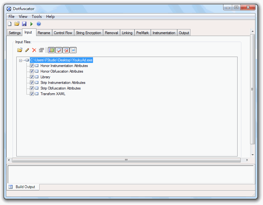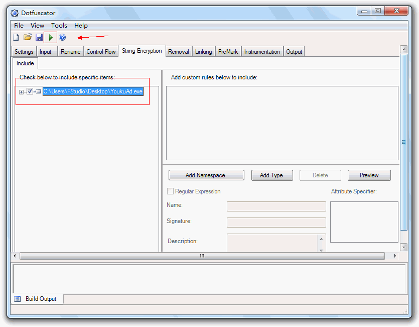 String Encryption 选项 include里勾选需要字符串加密的工程文件EXE、DLL等,点击Build,之后就可以啦: