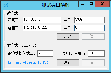 gYP.Start() 方法调用后填写一台公网主机IP(192.168.0.225)和端口(51),然后公网主机用lcx转发51到510端口,远程桌面在公网主机连自己(127.0.0.1:510)的510端口,就可以了。