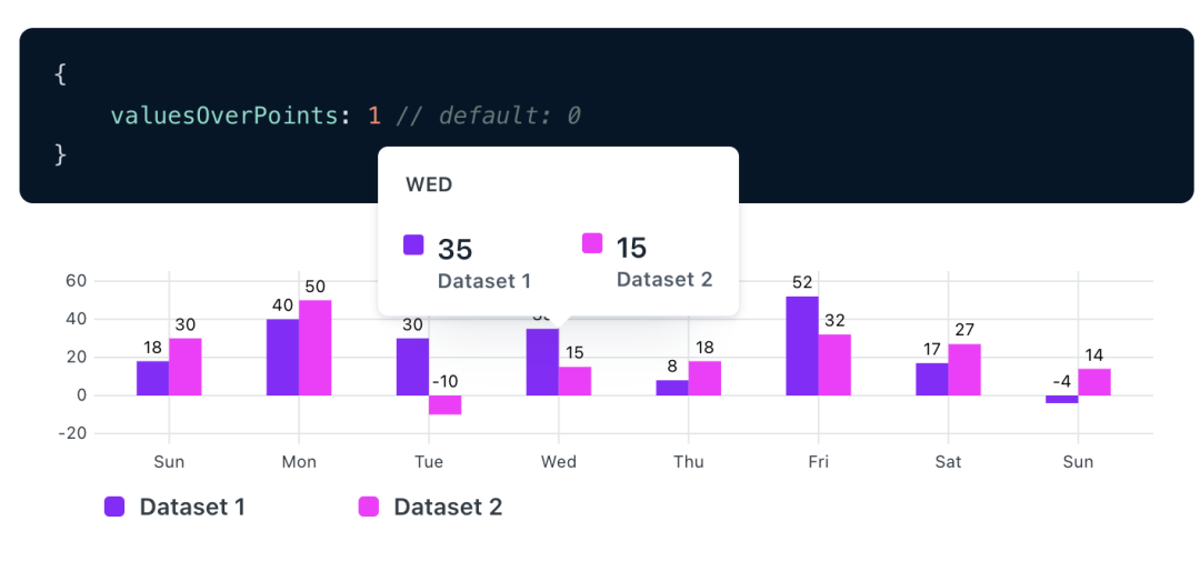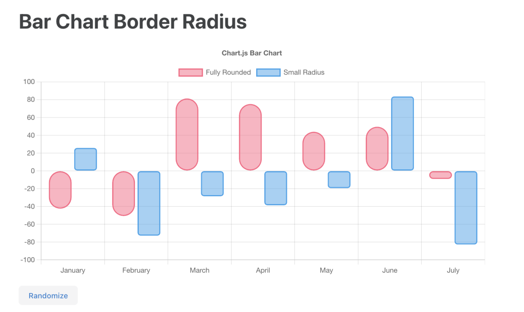 const config = { type : 'bar' , data : data, options : { responsive : true , plugins : { legend : { position : 'top' , }, title : { display : true , text : 'Chart.js Bar Chart' } } }, };