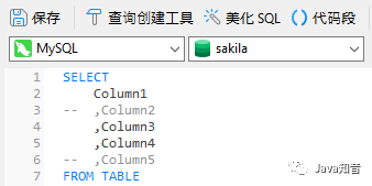 这类似于另一种在列名之前而不是之后加入逗号的技巧。同样,更容易注释: