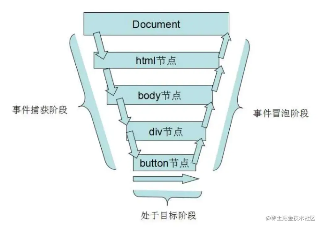 来张图让你更好的理解: 二、举个例子我们要实现这个效果,定义三个容器,给三个容器都添加一个点击监听事件,点击相应的容器并输出相应的打印。我们需要观察的是点击相应的容器的输出结果。 1.第一种情况当 代码如下: <!DOCTYPE html> <html> <head> <meta charset="UTF-8"> <meta http-equiv="X-UA-Compatible" content="IE=edge"> <meta name="viewport" content="width=device-width, initial-scale=1.0"> <title>Document</title> <style> #greenBox{ width: 200px; height: 200px; background: #c2f5ca; } #pinkBox{ width: 100px; height: 100px; background-color: #f7d0d0; color:#fff; position: absolute; } #blackBox{ width: 50px; height: 50px; background: #000; } </style>