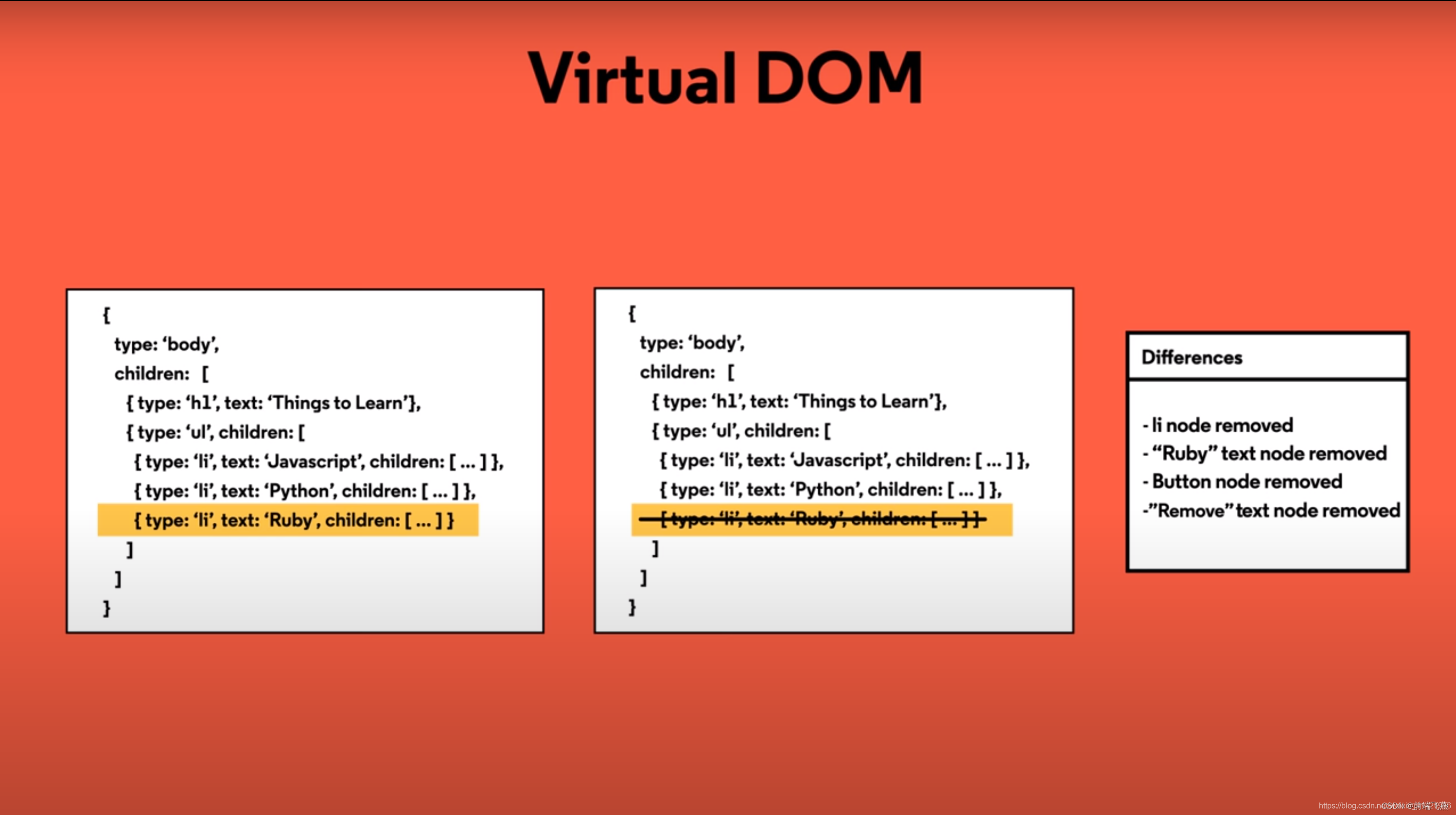 3. 响应式 虚拟DOM对于DOM来说,当HTML的一个元素(如div)需要响应数据更改时,会刷新整个页面,导致效率堪忧。 对于虚拟DOM,浏览器会将HTML文件转换为JS文件并复制一个额外使用(虚拟)。对于任何更改,虚拟DOM都将复制的JS与原始JS进行比较,只重新加载更改的部分,局部修改到真实DOM上。 在Vue中,每个绑定data属性的组件都有一个Watcher检测data属性的变化。一旦检测到改变,则重新渲染该组件,这就是响应式。
