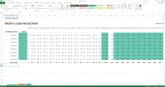 成功导出文件后,您可以在 Excel 中打开它,并查看文件与导入时的外观相同,只是现在我们添加了额外的收入行。