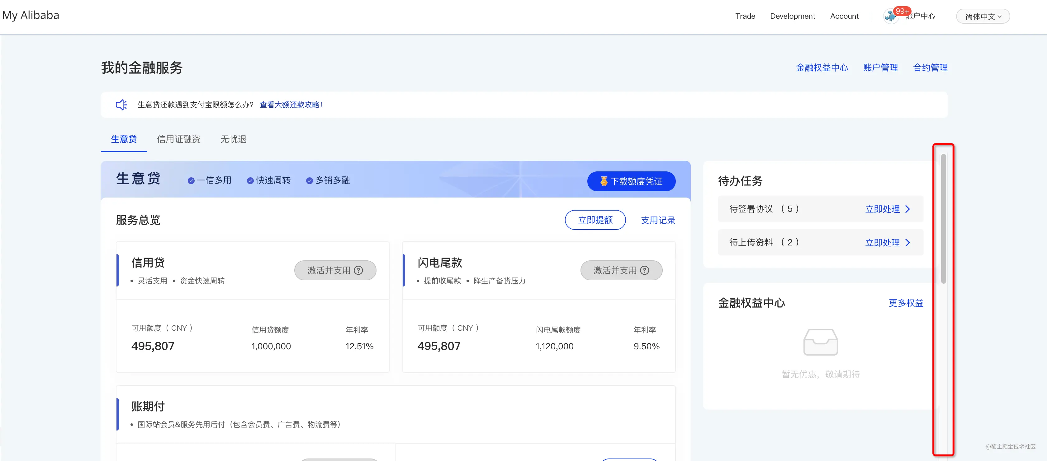 为什么一定要满足“iframe占据全部内容区域”这个条件呢?可以想象一下下面这种场景,滚动条出现在页面中间应该大部分人都无法接受: 实战:A系统接入B系统满足“iframe占据全部内容区域”条件的场景,iframe的几个缺点都比较好解决。下面通过一个实际案例来详细介绍将一个线上在运行的系统接入到另外一个系统的全过程。以笔者前段时间刚完成的ACP(全称Alibaba.com Pay,阿里巴巴国际站旗下一站式全球收款平台,下称A系统)接入生意贷(下称B系统)为例,已知: