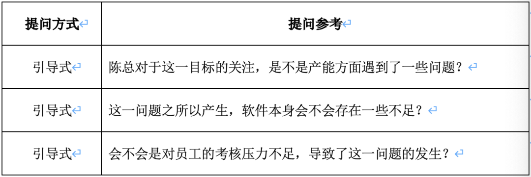 顺着客户的话,先深入探讨原因,回过头再敲打问题的严重性,最后确认客户真的束手无策以后,直接分享我们的建议。(如下图所示)