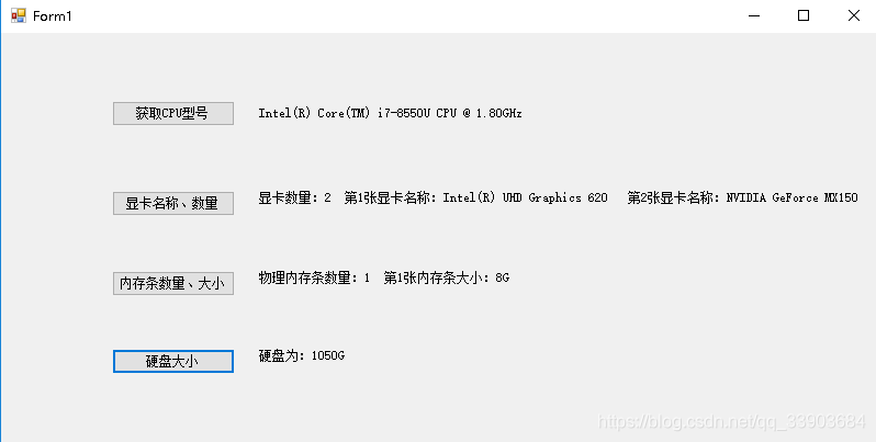 C# 获取当前电脑CPU型号,显卡名称,数量,内存条数量,大小,硬盘大小