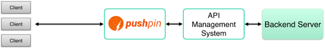 可以将API管理系统与Pushpin结合使用。将Pushpin放在前面,以便API管理系统不会受到长期连接的影响。此外,Pushpin可以将WebSocket协议转换为HTTP,允许API管理系统对转换后的数据进行操作。