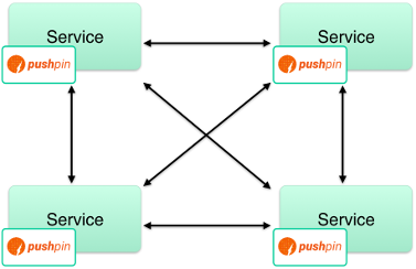 在微服务环境中,Pushpin可以轻松侦听来自其他微服务的即时更新,而无需集中式消息代理。每个微服务都有自己的Pushpin实例,微服务通过组织自己的API协定而不是特定于供应商的机制相互通信。