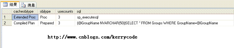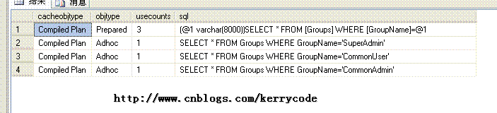 Summary:动态批处理不能访问定义在批处理里的局部变量 。 SP_EXECUTESQL 可以有输入输出参数,比EXECUTE灵活。 下面我们来看看EXECUTE , SP_EXECUTESQL的执行效率,首先把缓存清除执行计划,然后改变用@GroupName值SuperAdmin、CommonUser、CommonAdmin分别执行三次。然后看看其使用缓存的信息