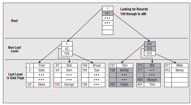 如果为表创建了索引,在进行检索前,Sql Server优化器会根据查询条件,从可用的索引中选择最优化的索引。检索时,便会遍历B树,当找到符合条件的记录,便把该记录存在结果集中。因此,检索大数据量的表,使用索引相对于整表扫描会显著地提高性能。