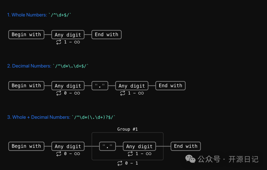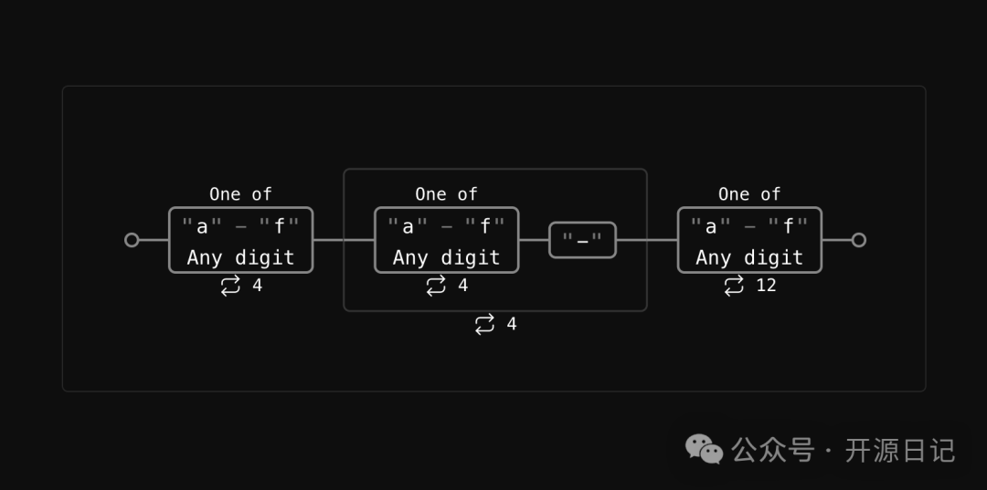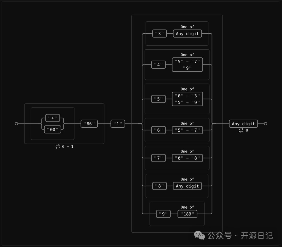 用户可以将其输入的正则表达式转换为可视化的图形展示。这个功能让用户能够快速了解正则表达式的结构和工作原理,提高对复杂模式的理解和使用。