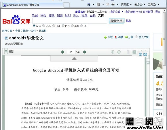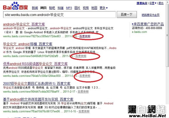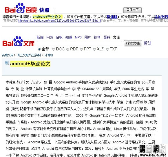 如搜索android+论文,输入:site:wenku.baidu.com android+论文 (中间有空格)
