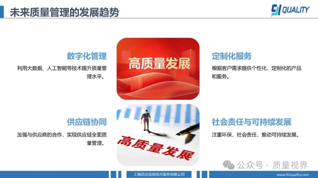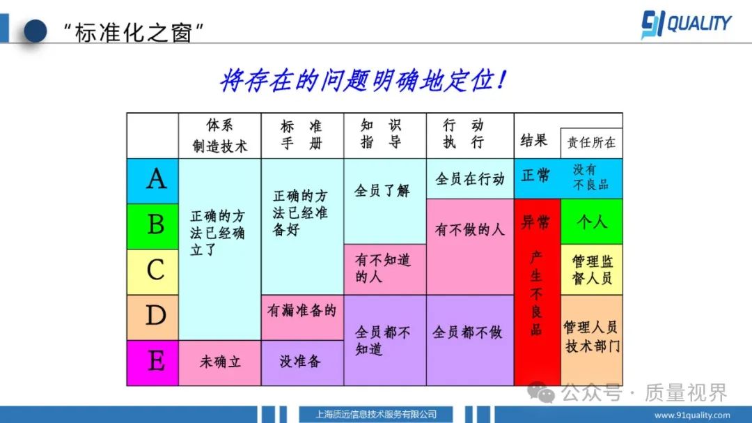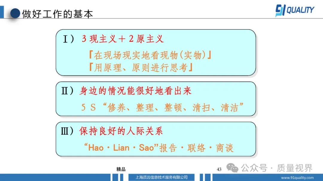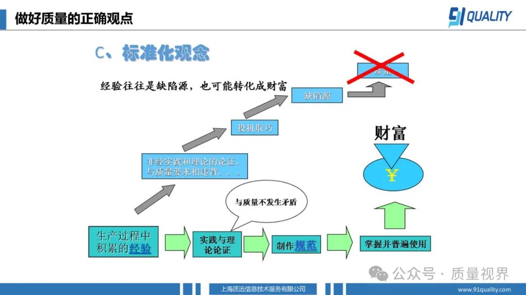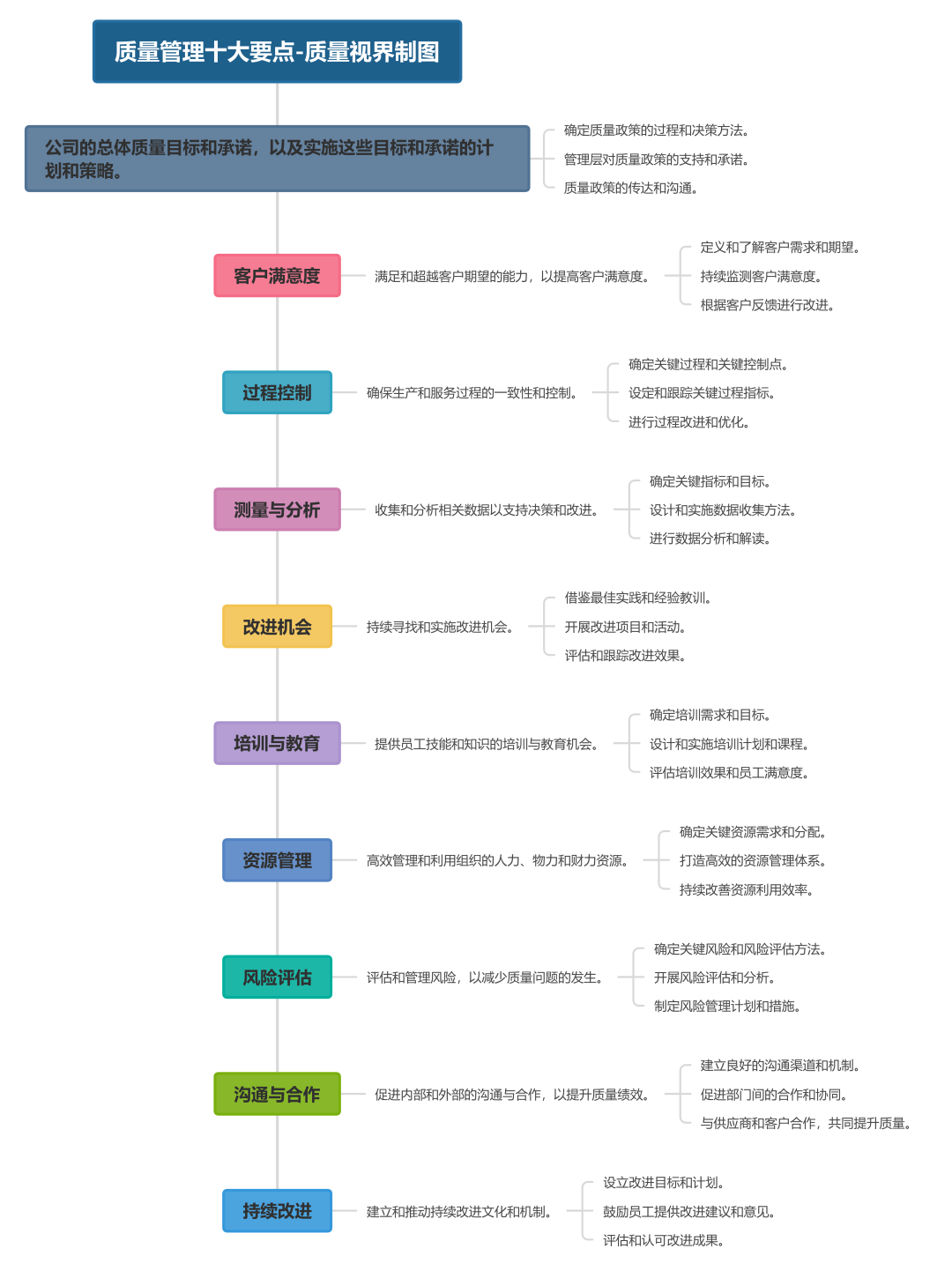 在当今竞争激烈、市场环境瞬息万变的商业版图中,产品与服务质量宛如企业的生命线,牢牢把控着企业兴衰存亡的命脉。而处于质量管理核心位置的质量人,肩负着保障质量水准、推动质量提升的重任,在这场质量捍卫战里,系统思维成为其不可或缺的 “秘密武器”。本文介绍质量管理4个等级、7大原则、10个基本思维方式、12个步骤、15个基本原理,每一条都是管理精髓。 01 质量的4个等级 02 质量管理的7大原则 质量管理的七大原则是以顾客为关注焦点、领导作用、全员参与、过程方法、改进、循证决策、关系管理 ,以下是对这些原则的详细阐述: 1、以顾客为关注焦点:深入了解顾客需求,包括潜在需求。例如苹果公司通过不断创新产品功能和提升用户体验,满足了消费者对于便捷、高效和高品质电子产品的需求。确保组织的目标与顾客需求和期望相结合,将顾客满意度作为衡量工作成效的重要指标。 2、领导作用:领导者要为组织制定清晰的质量方针和质量目标,指明发展方向。如华为的任正非提出了 “以客户为中心,以奋斗者为本” 的核心价值观,引领华为在全球通信和科技领域取得巨大成功。 3、全员参与:为员工提供必要的培训和资源,使他们具备相应的能力和知识,以胜任质量管理工作。比如一些制造企业会定期组织员工参加生产技能和质量管理培训课程。建立激励机制,鼓励员工积极参与质量改进活动,对表现优秀的员工给予奖励和认可。 4、过程方法:识别和确定组织内的关键过程,例如产品设计开发过程、生产制造过程、售后服务过程等。对每个过程进行策划、实施、检查和改进,即 PDCA 循环,确保过程的有效性和效率。丰田公司的生产过程管理就是过程方法的优秀典范,通过不断优化生产流程,实现了高质量和高效率的生产。 5、改进:建立持续改进的机制和文化,鼓励员工发现问题并及时提出改进建议。如海尔集团的 “日清日高” 管理模式,要求员工每天对工作进行总结和改进。运用各种质量管理工具和方法,如六西格玛、精益生产等,对组织的产品、服务和管理过程进行持续改进。 6、循证决策:收集和分析与质量管理相关的数据和信息,包括顾客反馈、生产数据、质量检测数据等。例如电商企业通过分析大量的顾客评价数据,来改进产品和服务质量。 7、关系管理:识别组织的相关方,包括供应商、合作伙伴、顾客、员工等,并建立良好的沟通和合作关系。 03 质量管理的10个基本思维方式 04 质量管理体系建立和实施的12个步骤 05 质量管理的15个基本原理 阅读原文:原文链接 点晴模切ERP更多信息:http://moqie.clicksun.cn,联系电话:4001861886 该文章在 2025/1/23 9:24:29 编辑过 |
