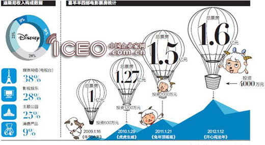 刚刚过去的贺岁档,喜羊羊电影成为中国动漫市场的大赢家。《喜羊羊与灰太狼》第四部“开心闯龙年”以1.6亿元的票房收入横扫其它所有竞争对手,创造了新纪录。这部投资不过4000万的国产动画电影,票房号召力丝毫不亚于任何一部群星璀璨的商业大片。