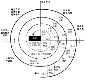 图 2.2.2-7 能够降低风险的瀑布模型(对需求分析和架构设计阶段采用螺旋模型)