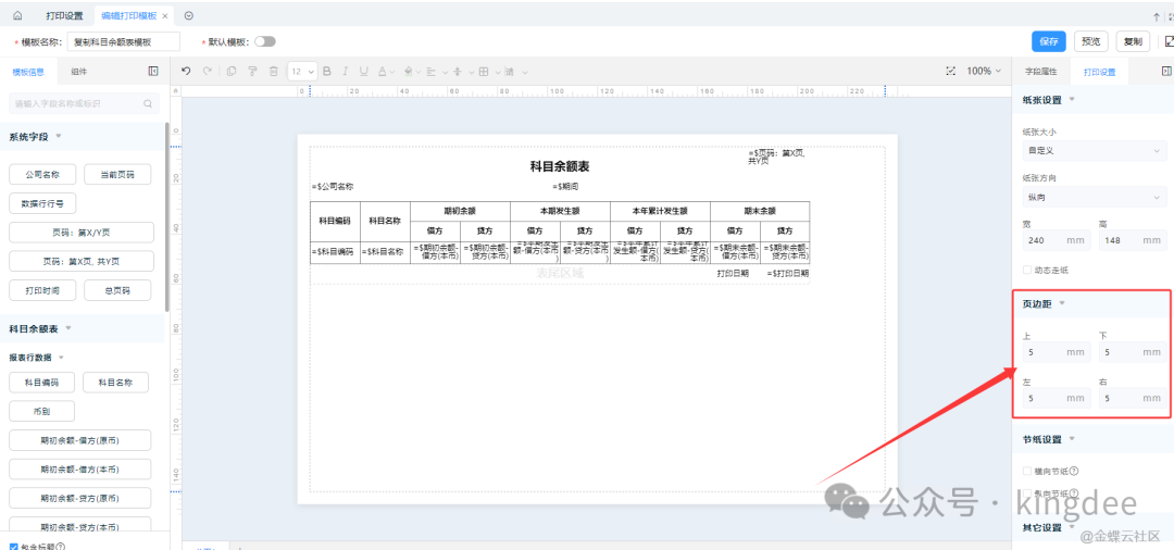 ②修改页边距。编辑界面右侧,“打印设置”中“页边距”根据打印效果输入合适的编剧值即可。