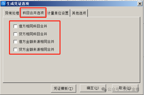 生成失败处理:在生成凭证时,若出现失败的情况,可查看报告。选项中有生成凭证的一些设置,可以设置生成凭证出错时的处理方法以及合并生成凭证的依据。