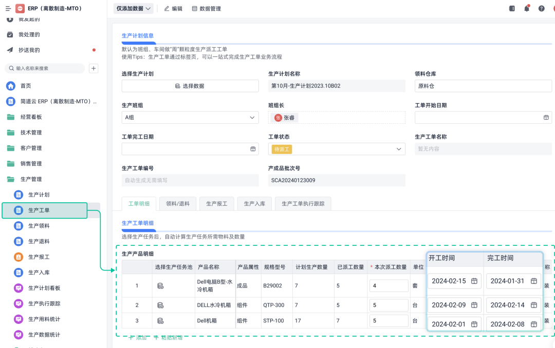 • 每天根据工单执行进度录入系统:完工数量、是否延迟、物料到齐没;