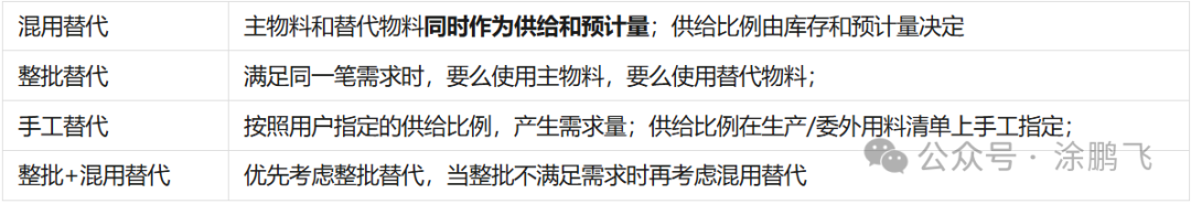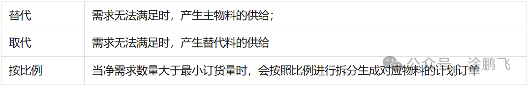 物料替代方案是指当原物料因供应短缺、成本过高、质量问题等情况无法使用时,寻找具有相似性能、功能或用途的替代物料来满足生产、研发或使用需求的解决方案。该方案需综合考量替代物料的适用性、经济性、可行性等因素,以确保替代后不影响最终效果。 在您实际业务中,可能存在由于订单取消、工程变更、客户需求变化、预测或计划不准确等原因造成原材料库存积压、呆滞,使企业在仓库积压大量存货,企业出于降低物料成本、或及时响应客户需求等因素考虑,都会存在使用替代物料的情况。针对上述场景,系统支持针对不同企业、行业、产品的业务需求,设定相应的替代策略、替代方式、替代优先级等基础数据,在计划运算时会根据相应的设定来匹配主物料、替代料的需求供应。 替代方案各个关键字段的具体应用操作替代策略替代方式优先级(1) 主物料页签的优先级:一个替代方案,只能对一个或者一组主物料设定替代关系,故主物料的优先级都是同样的。 (2) 替代物料页签的优先级:一个主物料可以设定多个不同优先级的替代物料,根据替代物料的供给顺序设定优先级。 替代主料替代主料:用于在MPS/MRP计算时,按照替代主料的供给来判定是否产生替代 (1) 主物料页签的替代主料:主物料页签设置被替代物料,主物料有且只能有一个替代主料(可理解为关键件)。 (2) 替代物料页签的替代主料:替代物料页签设置替代物料,优先级相同的替代物料,且只能有一个替代主料。 替代类型替代类型:分为BOM替代和订单替代两种 (1) BOM替代:适用于BOM子项的替代 (2) 订单替代:适用于成品不同辅助属性之间的替代。注意:物料需启用辅助属性并勾选影响计划。 您已经了解替代方案各关键字段的用途,设置好替代方案,后续如何能在计划运算的时候考虑这个替代关系?您需要做如下操作。 替代方案需设置到物料清单中,目前有两种方式可以设置到BOM中。如下所述。(1) 您可以在物料清单中点击【替代设置】,选择之前已经设置好的替代方案编码即可,下图所示。 (2) 您可以在替代方案中进行批量设置,点击【业务操作】→【批量设置】,如下图所示。 然后在“替代关系批量设置”界面中,勾选需要批量设置的BOM,再点【确定】即可,如下图所示: 计划方案的【运算参数】页签需勾选“考虑物料替代”通过上述单元学习,相信您对替代方案的设置与如何在计划运算中考虑物料替代方案的具体操作有初步了解,接下来通过案例分别介绍一对多替代、组合替代、订单替代的具体计算逻辑。 案例分析案例1
