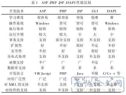 从表1可以看出,JSP运行开销小,可以跨平台运行,扩展性很好。
