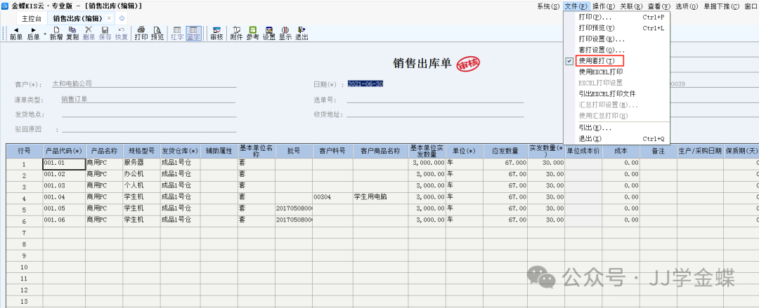 金蝶云·KIS专业版里的每张业务单据都能根据客户的需求,按照特定要求制作相应的套打文件,套打后形成对应的文档资料。例如,采购订单可套打成采购合同,销售订单能套打成销售合同,销售出库单则可套打成送货单等。