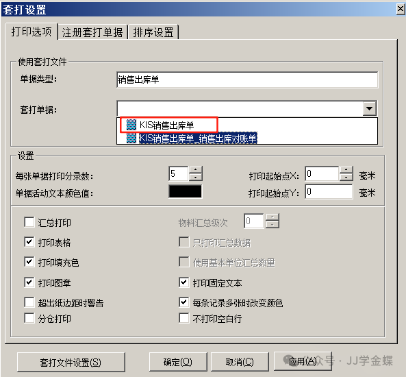 2. 在“套打单据”下拉菜单中找到自己注册的套打文件。