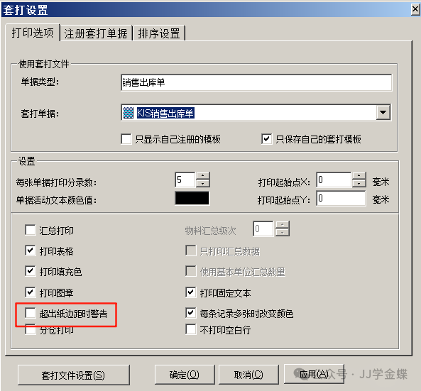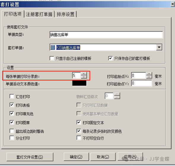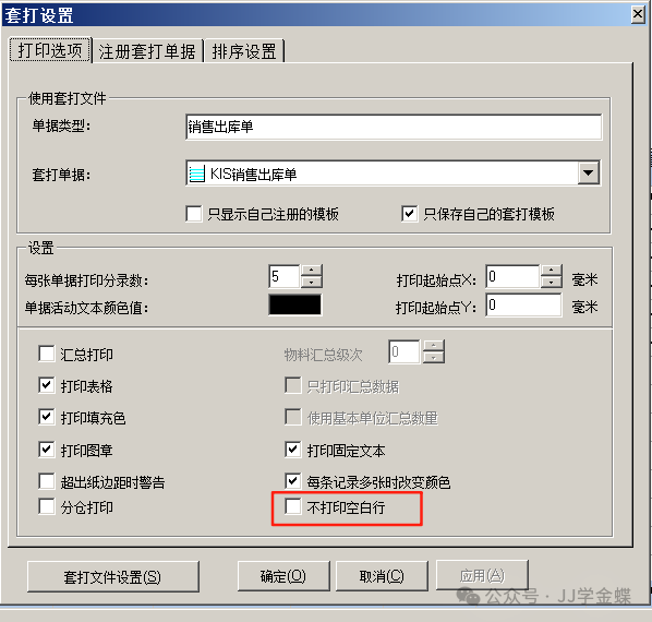 5. “不打印空白行”可根据实际情况选择,该选项对应步骤3里设置的打印行数。 设置完成后,点击“应用”和“确定”。